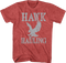 In Over The Top, Lincoln Hawk was a struggling trucker who tried to bond with his son while he would arm wrestle any competitor on his way to the World Arm Wrestling Championships in Las Vegas. Lincoln had Hawk Hauling written on the doors of the truck and a hawk hood ornament on the front of the truck. The name and the hawk ornament make the logo that appears on this Over The Top t-shirt!