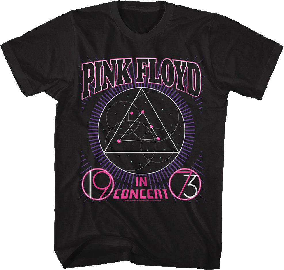 This Pink Floyd t-shirt features a galactic prism that was used to promote the band's concerts for their 1973 Dark Side of the Moon world tour.