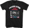 This Twisted Sister t-Shirt shows a black and white image of the hair band Twisted Sister with American flags. The US leg of the world tour had a hundred and nine concert dates and rocked audiences with songs like "I Wanna Rock", "We're Not Gonna Take It", and "You Can't Stop Rock 'n' Roll".