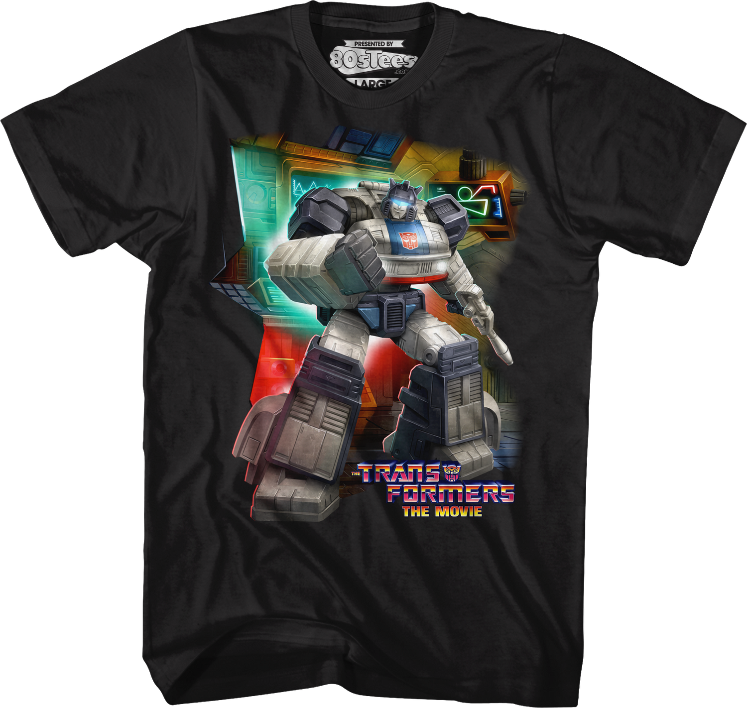 For any fan of the character that was voiced by Scatman Crothers in Transformers: The Movie, this 1986 Jazz Transformers T-Shirt is a must have!