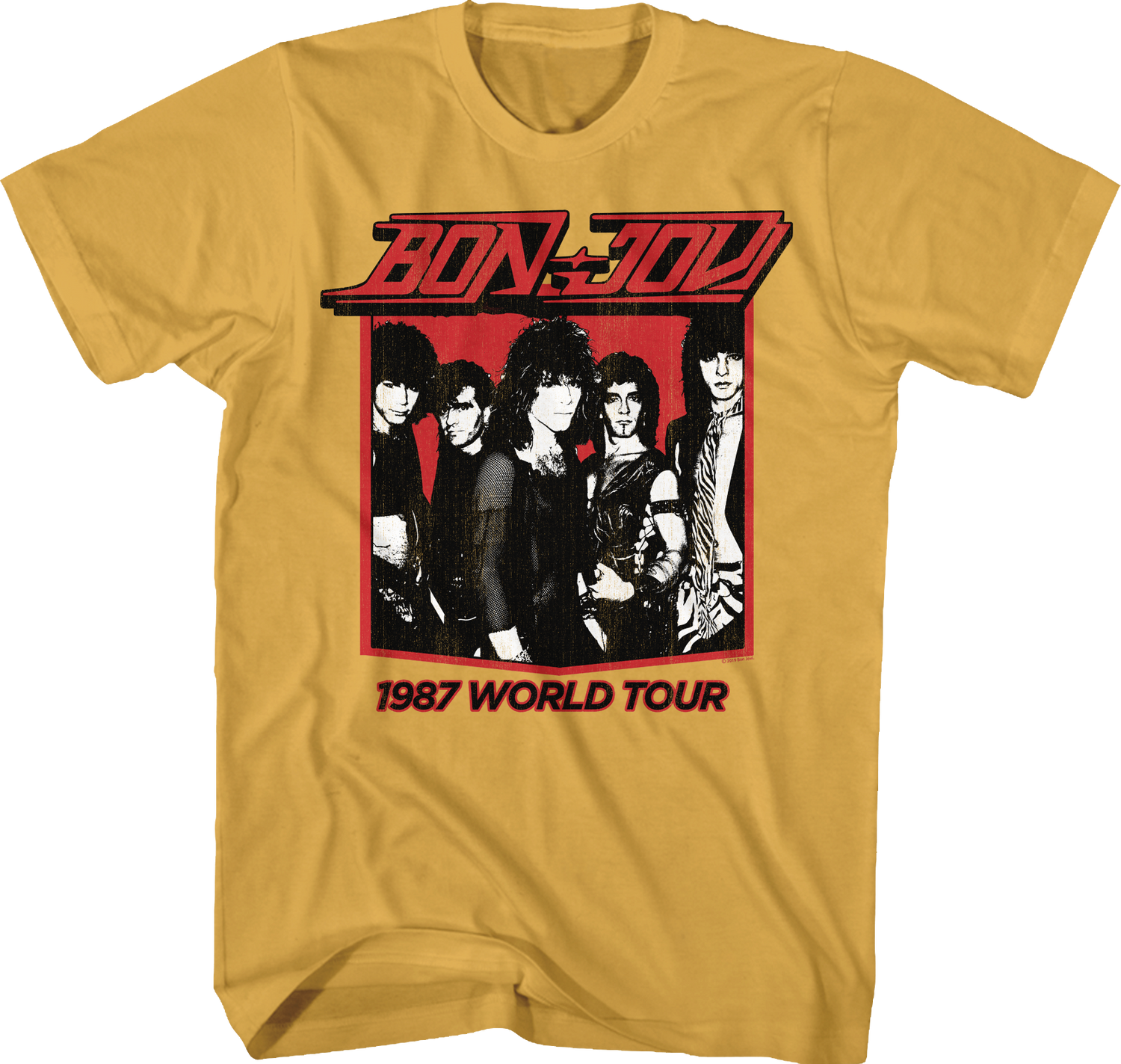 For any fan of Bon Jovi's classic album Slippery When Wet, this 1987 World Tour Bon Jovi T-Shirt is a must have!