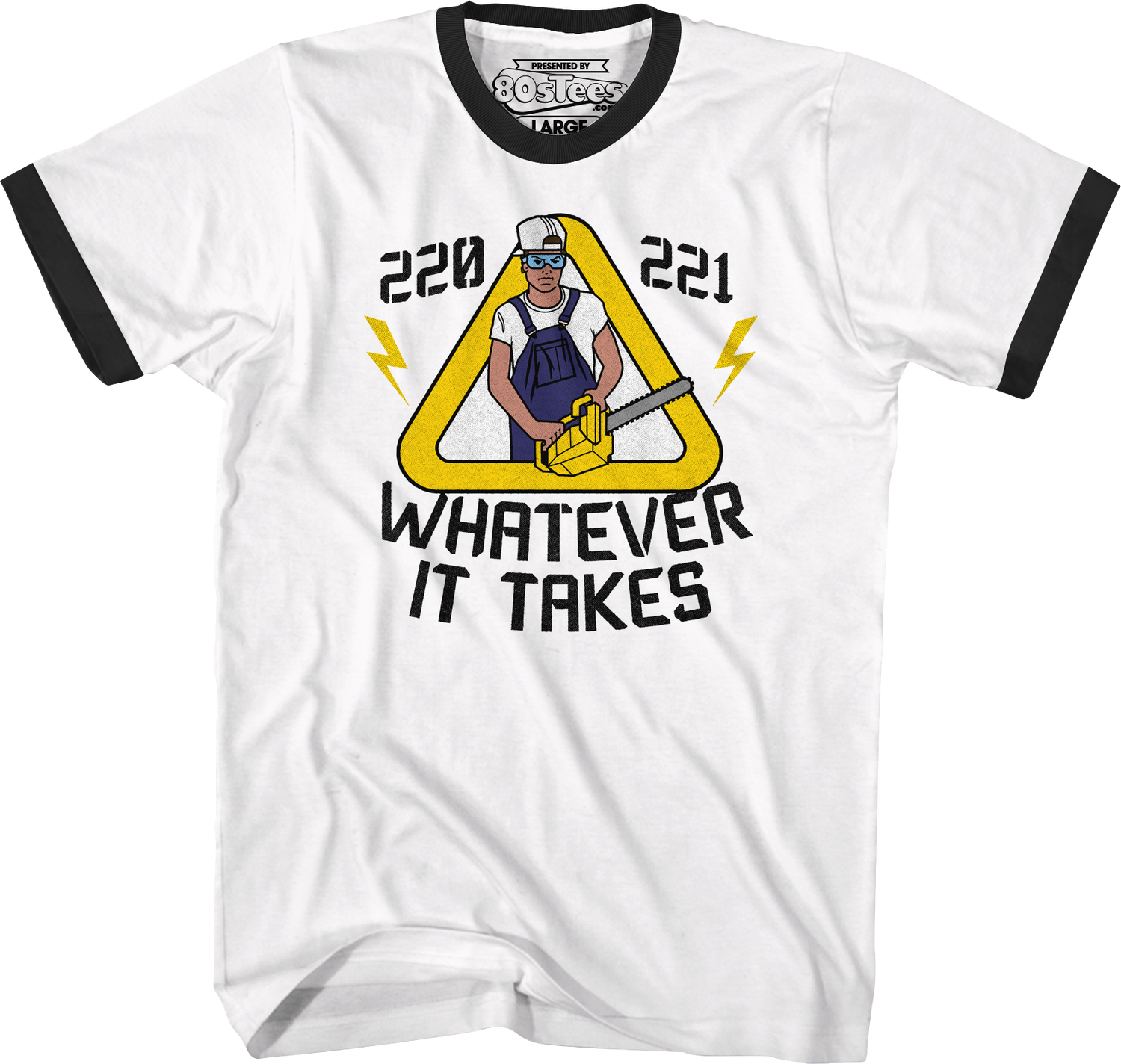 Everyone will immediately know you are a fan of the comedy classic starring Michael Keaton when you wear this 80sTees.com exclusive 220, 221 Whatever It Takes Mr. Mom Ringer Shirt.
