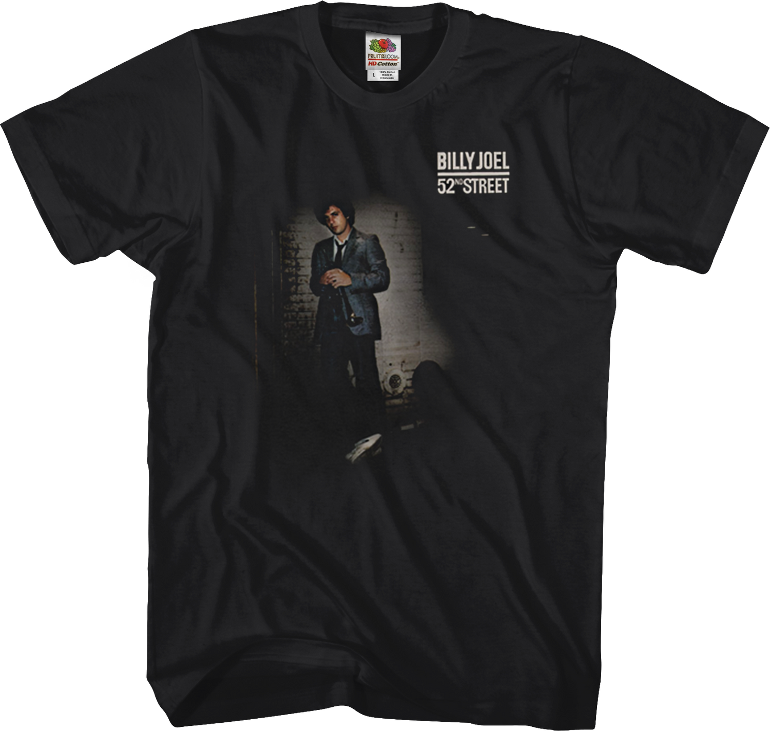 This Billy Joel shirt features the cover art from his sixth studio album, 52nd Street. Released in 1978, it contained many of Billy Joel's most famous hits, including "My Life", "Big Shot", and "Honesty". The title references New York City's 52nd Street, which was a well-known area for jazz from the 1930s to 1950s.