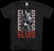 The King of Rock and Roll is pictured wearing black leather on this '68 Comeback Special Elvis Presley T-Shirt with his name repeated behind him. The performer performed live on December 3, 1968 and relaunched his career in music after spending years in the movie business. A picture taken during the performance was featured on a cover of Rolling Stone in 1969 and the performance has become one of his most iconic.