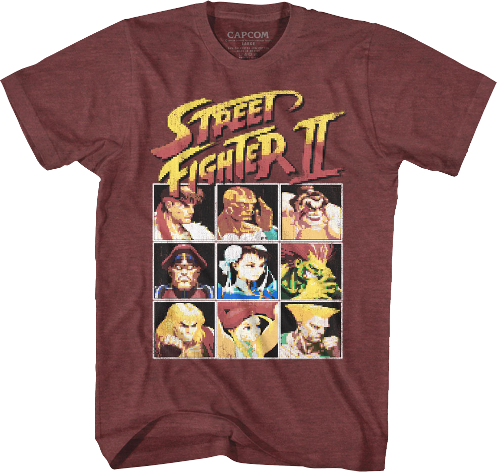 Street Fighter II is one of the most popular and influential video games of all time. Everyone will know you are a fan when you wear this 8-Bit Characters Street Fighter II T-Shirt!
