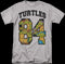 This Teenage Mutant Ninja Turtles t-shirt is designed to look like an athletic jersey with images of Michelangelo, Raphael, Leonardo and Donatello in the number 84.
