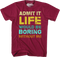 You're the life of every party, and you know it. Everyone will want to be close to you, and get to know your energy, charm, and humor when they see you wearing this 80sTees.com exclusive Admit It Life Would Be Boring Without Me T-Shirt!