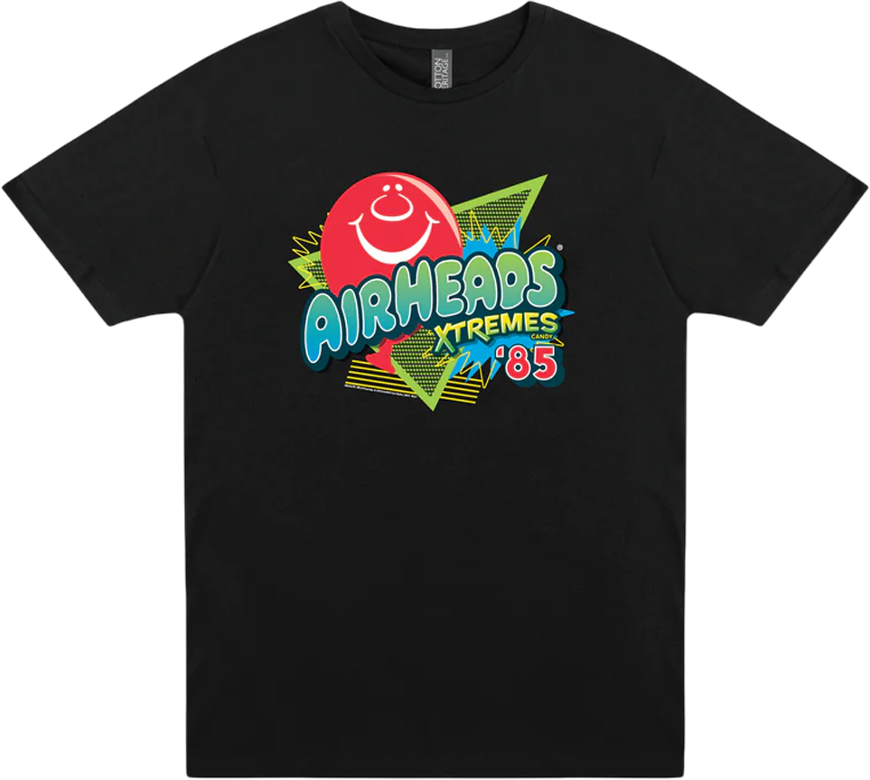 The delicious chewy candy Airheads was first introduced in 1985. In the 1990s, Airhead Xtremes was released as sour, colorful, and extra chewy alternative for people who love sour candies. Airhead Xtremes are multi-colored strips that look like rainbow belts that are coated in a sour sugar that gives a tangy kick before the sweet, fruity flavor comes through. Everyone will know you are a fan when you wear this Airheads Xtremes T-Shirt!