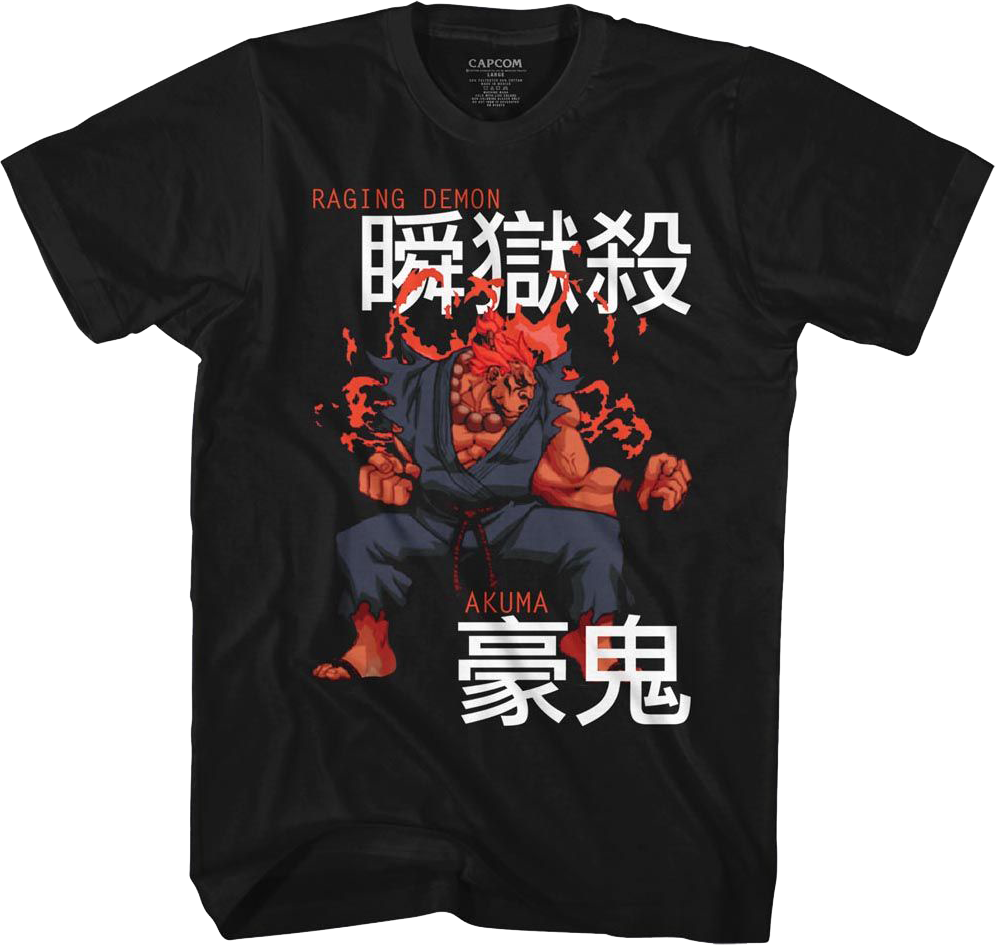 For any fan of the supreme master of the fist, this Akuma Japanese Text Street Fighter T-Shirt is a must have!