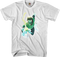 This image is one of Alex Ross' most famous illustrations of Green Lantern, titled Lantern Flight. With Alex Ross' intricate detail, Green Lantern looks like he is ready to fly right off this shirt.