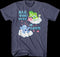 Good Luck Bear was given the almost impossible Caring Mission of making Grumpy Bear feel less grouchy. This Care Bears t-shirt shows Good Luck Bear pouring a watering can that includes hearts on Grumpy Bear. The shirt reads All You Need Is Love.