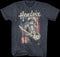Jimi Hendrix is considered by many to be the greatest rock guitarist of all time. Now, you can show that you are a fan of the Rock and Roll Hall of Famer with this American Flag Jimi Hendrix T-Shirt. The image shows Jimi playing his guitar with the stars and stripes in the background.