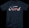 Since 1903, Ford Motor Company has put the world on wheels. From the moving assembly line to soy foam seats and aluminum truck bodies, Ford has a long heritage of progress. Ford vehicles are known for being tough and reliable, and everyone will know you are a fan when you wear this American Flag Logo Ford T-Shirt!