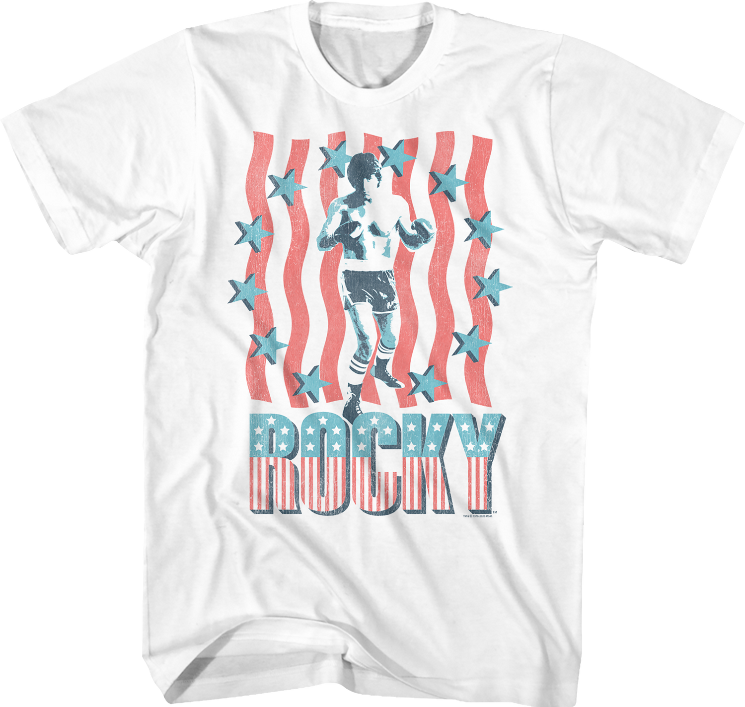 For any fan of the 1976 classic starring Sylvester Stallone, this American Flag Rocky Shirt is a must have!