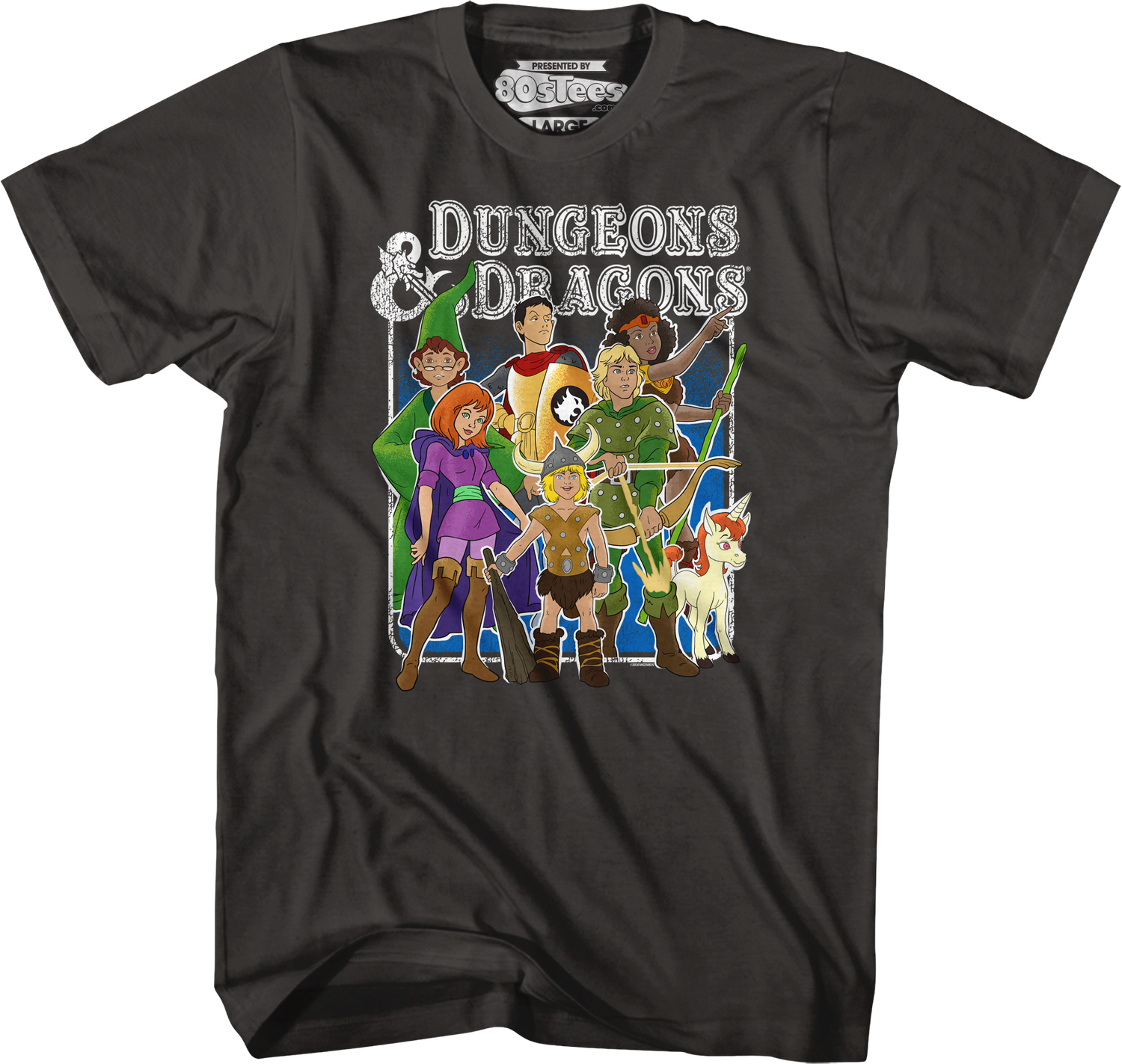 For any fan of the animated series that is based on the classic role-playing game, this 80sTees.com exclusive Animated Friends Dungeons & Dragons T-Shirt is a must have!