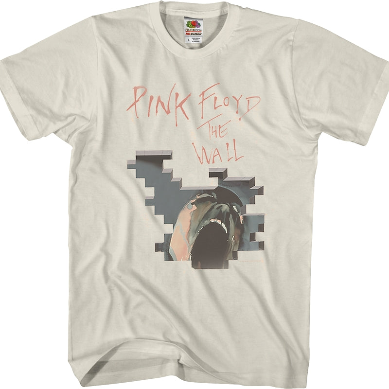 This Another Brick in the Wall Pink Floyd T-Shirt shows the title of the rock band's eleventh studio album with the unforgettable screaming face behind a hole in a brick wall. The 1979 album is a rock opera that explores abandonment and isolation that is symbolized by the wall that is seen on this t-shirt. The Wall is one of Pink Floyd's most successful albums and is so popular that it inspired a musical drama film.