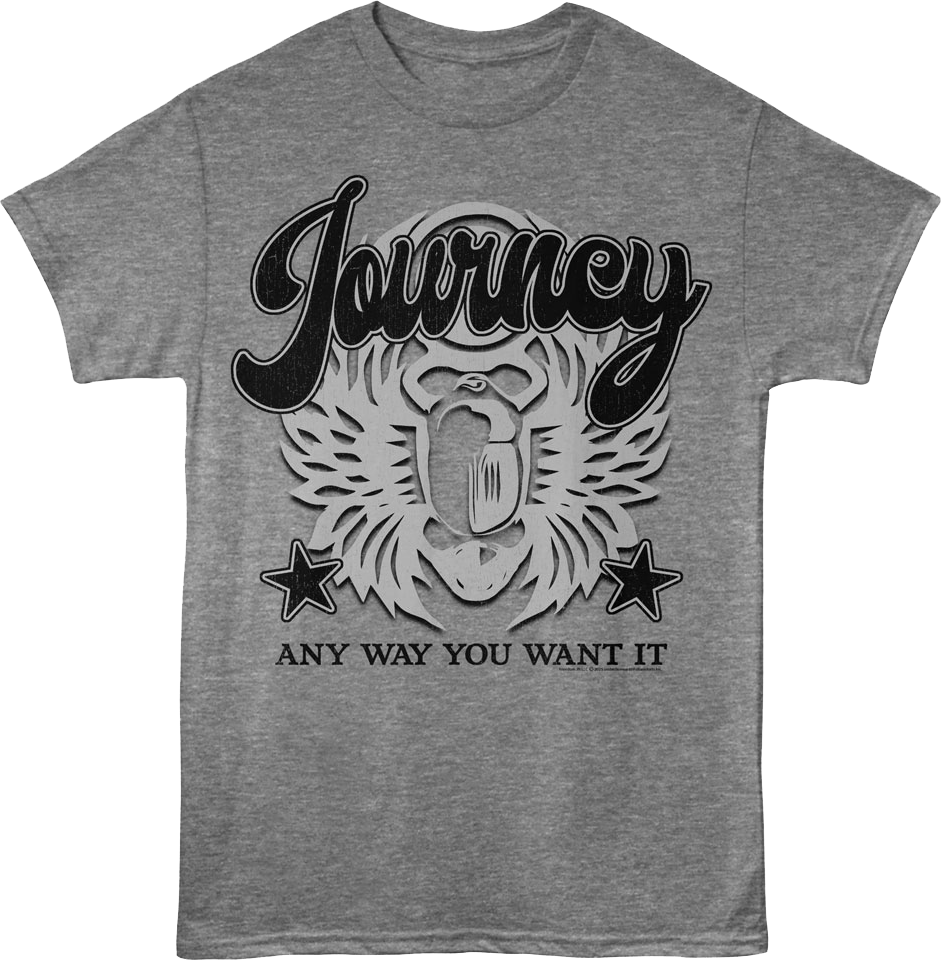 In 1980, Journey released the single "Any Way You Want It", which appeared on the band's sixth album Departure. The song became a live staple for the band as well as a heavily rotated song on classic rock radio and a signature song for Journey. Everyone will instantly know you are a fan of the iconic 1980 song when you wear this Any Way You Want It Journey T-Shirt!