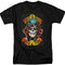 This Guns N' Roses t-shirt features a promotional image promoting the band's 1988 tour in support of the hit album Appetite For Destruction. The image is the skull representing lead singer Axl Rose, which appeared in the center of the cross on the cover artwork for Appetite For Destruction.