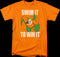 This Aquaman t-shirt shows the king of Atlantis swimming to save the day one more time. The shirt reads Swim It To Win It.