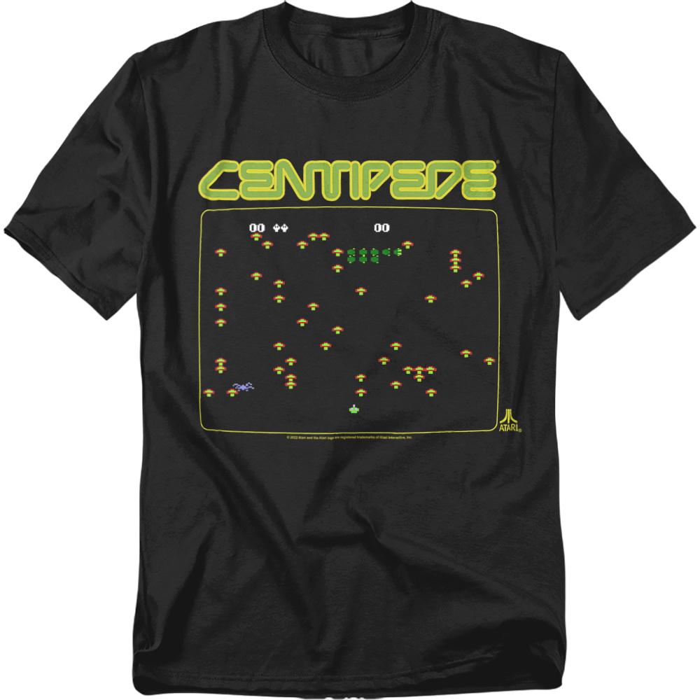 This Atari Centipede t-shirt features a screenshot of the exciting shoot-'em-up arcade game, where a player would control a small character at the bottom of the screen who would shoot lasers at a centipede that would advance down the screen through a maze of mushrooms. Since it's release in 1980, Centipede has been regarded as one of the truly iconic Atari video games. Now, you can show that you are a fan with this Atari Centipede t-shirt. Everyone that sees you wearing this Atari Centipede t-shirt will immediately know that the centipede invasion has begun all over again!
