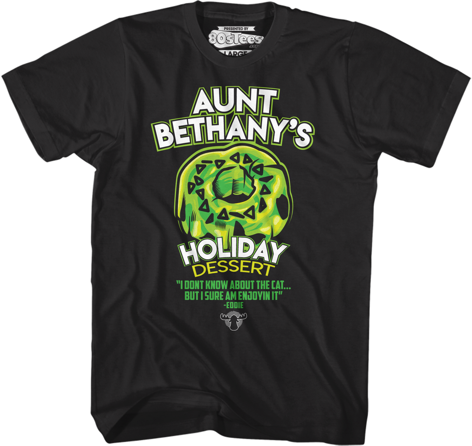 For any fan of the 1989 classic Christmas Vacation, this 80sTees.com exclusive Aunt Bethany's Holiday Dessert t-shirt is a must have!