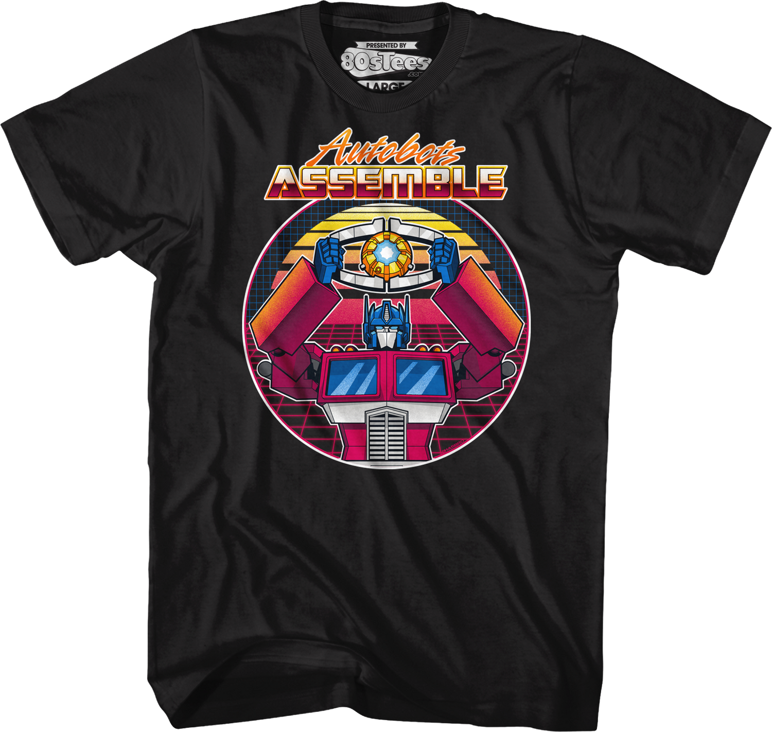 If you believe freedom is the right of all sentient beings, this 80sTees.com exclusive Autobots Assemble Transformers T-Shirt is perfect for you!