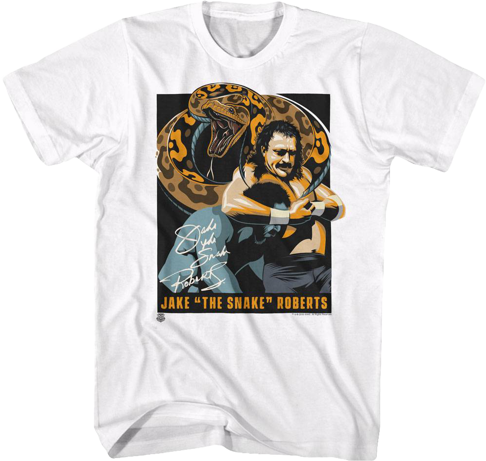 For any fan of the wrestling legend, this Autograph Jake The Snake Roberts t-shirt is a must have!