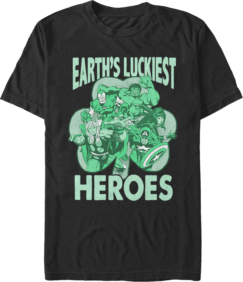 This St. Patrick's Day, everyone will know you are a fan of Earth's mightiest heroes when you wear this Avengers Earth's Luckiest Heroes Marvel Comics T-Shirt!