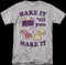 This t-shirt shows delicious treats made in an Easy-Bake Oven. The shirt reads Bake It 'Til You Make It.