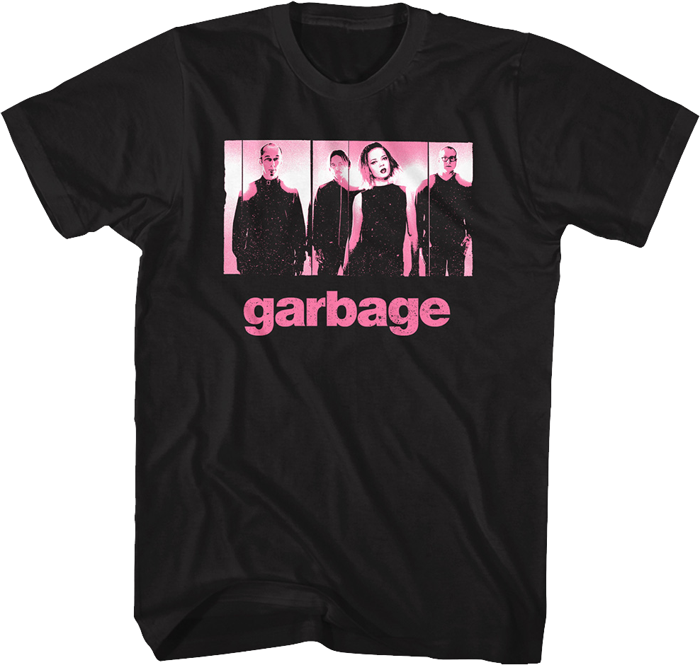 Headed by frontwoman Shirley Manson, alternative quartet Garbage debuted in the 90s with a guitar-based, electronic-washed sound on the hits "Only Happy When It Rains", "Stupid Girl" and "Milk". Let everyone know you are a fan with this Band Photo Garbage T-Shirt!