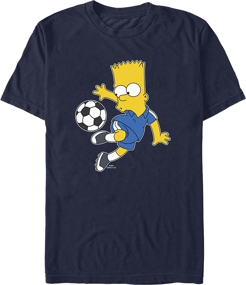 This Simpsons t-shirt shows Bart Simpson kicking a soccer ball.