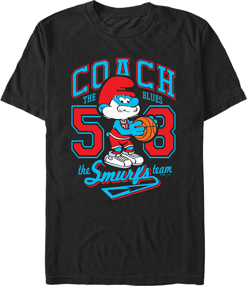 This Smurfs t-shirt shows Papa Smurf as the coach of the Smurfs basketball team "The Blues".