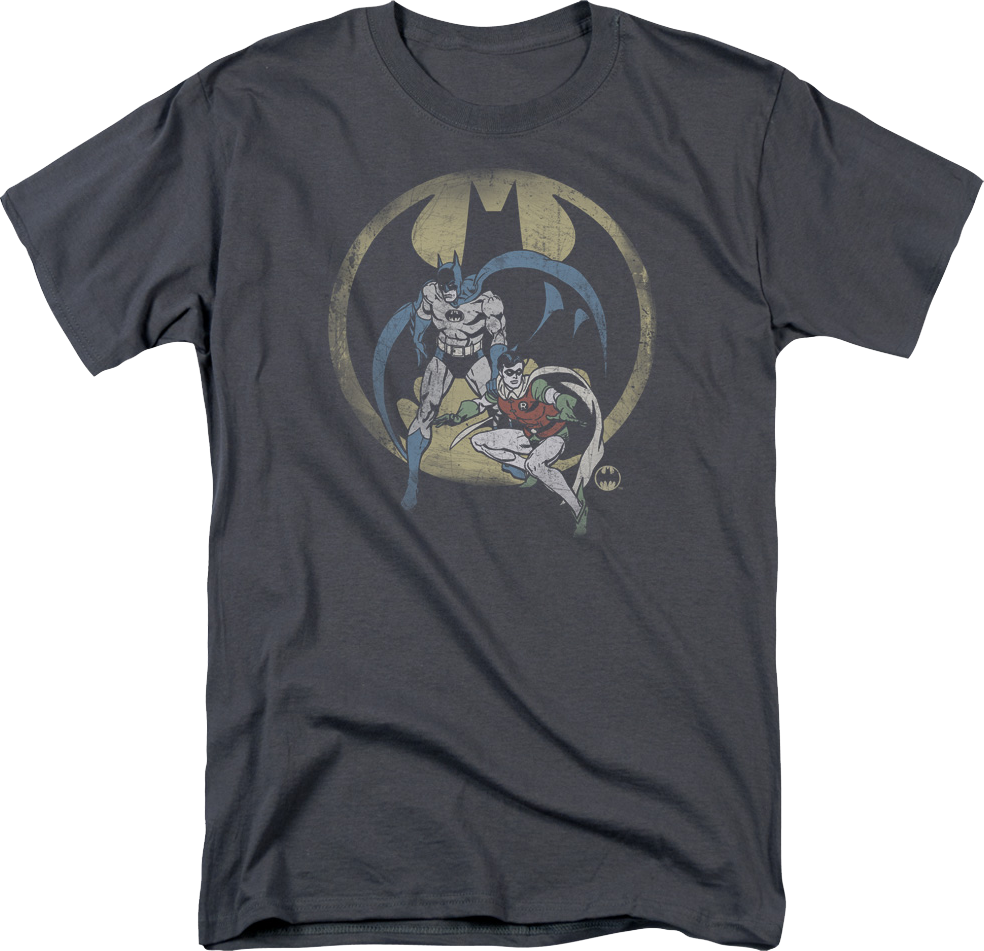 Let everyone know you are a fan of the greatest crime fighting team of all time with this Batman And Robin The Dynamic Duo DC Comics T-Shirt!