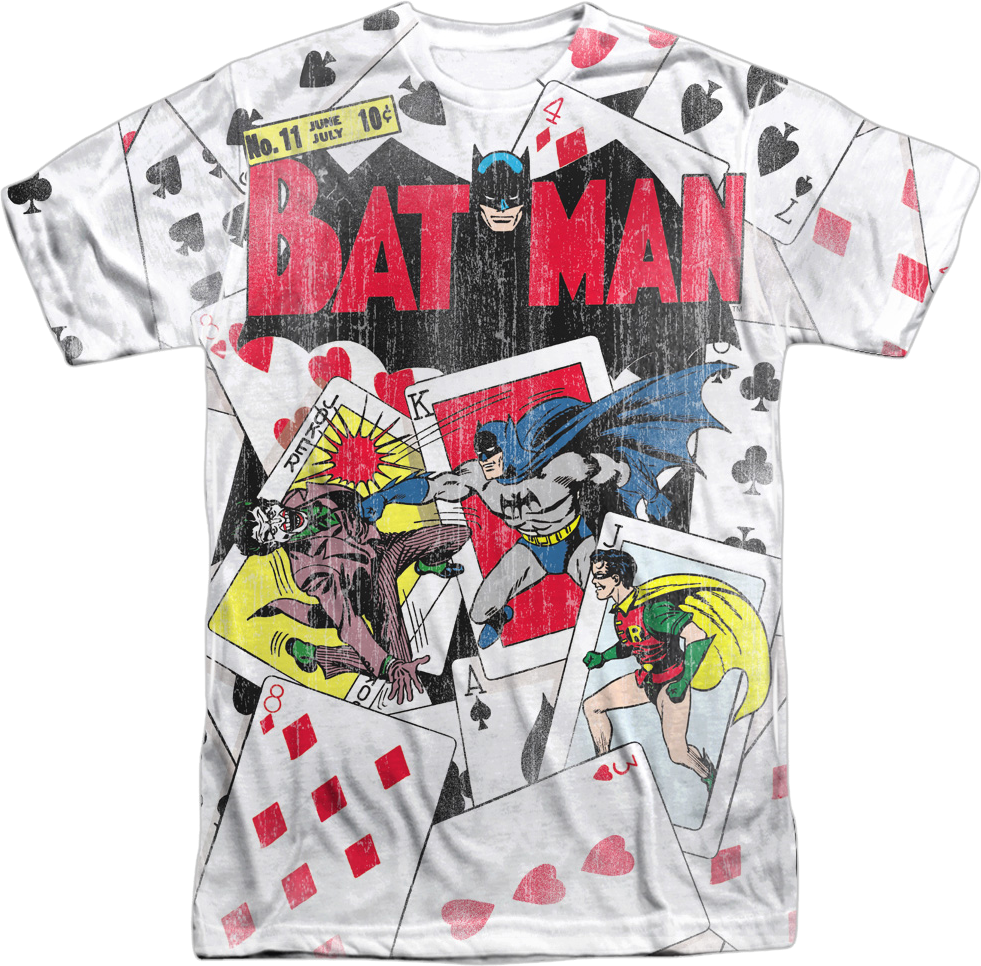 For any fan of the Dark Knight, the Boy Wonder, and the Clown Prince of Crime, this Batman Big Print The Joker's Advertising Campaign DC Comics T-Shirt is a must have!