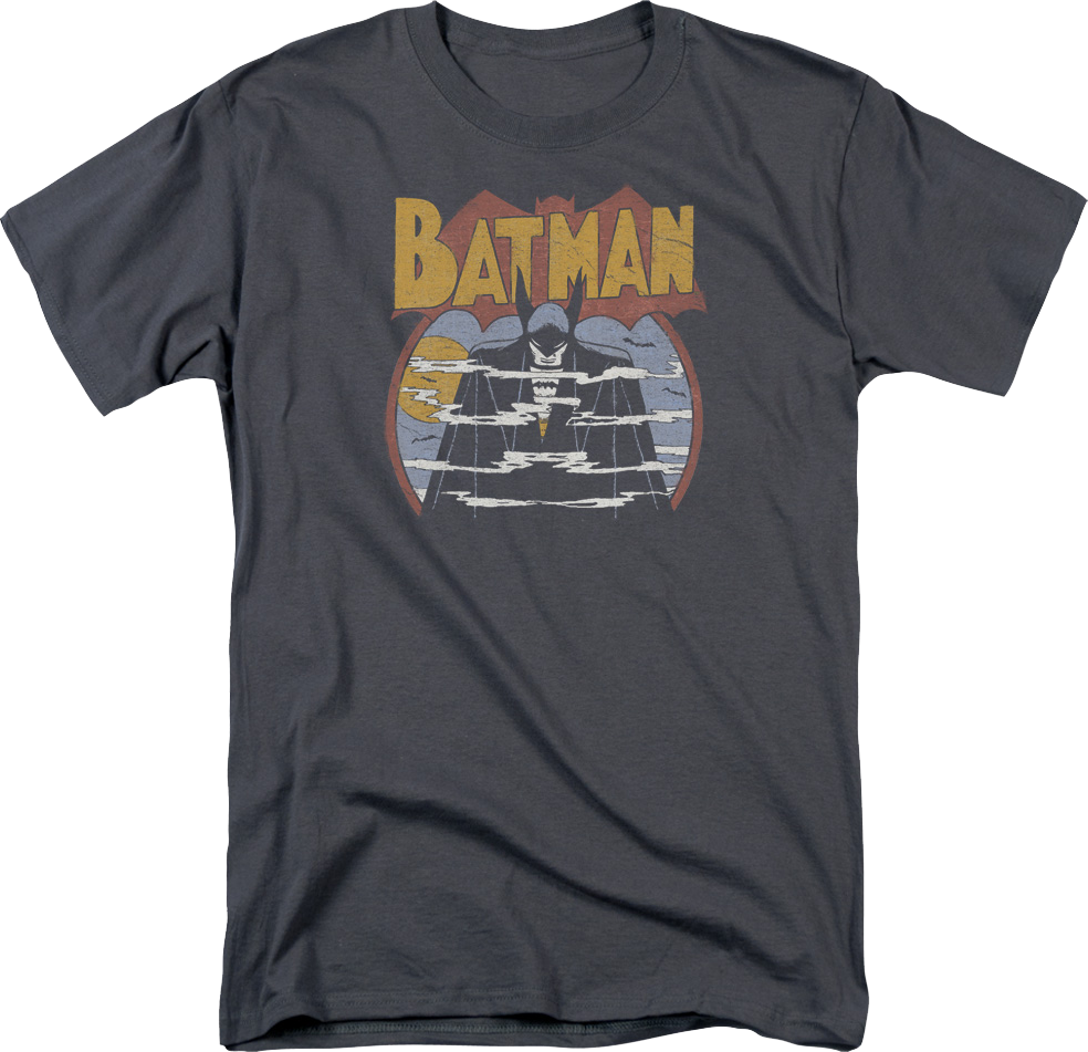 Everyone will immediately know that you are a fan of the fearless Caped Crusader when you wear this Batman In Gotham Fog DC Comics T-Shirt!