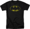 This Batman t-shirt shows yellow bats coloring in the oval in the Caped Crusader's logo.
