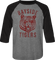 This Saved By The Bell raglan baseball shirt features the logo for the Bayside Tigers. This is the logo that is seen on A. C. Slater's wrestling uniform and on Kelly Kapowski's cheerleading uniform.