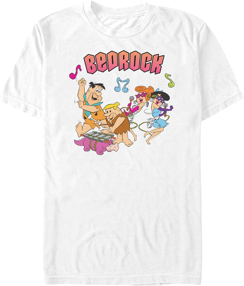 In the classic series The Flintstones, the Flintstone and Rubble families use prehistoric dinosaurs to do everyday activities like playing music. The Flintstones blends classic sitcom storytelling, clever world-building, lovable characters, and timeless humor in a way few animated series have ever matched. Everyone will know you are a fan when you wear this Bedrock N Roll Flintstones T-Shirt!