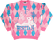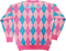 This 80sTees.com exclusive My Little Pony knitted sweater shows ponies in an argyle pattern. The sweater reads Besties. The back of the sweater shows the My Little Pony logo.