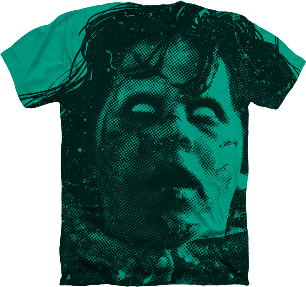 This Exorcist t-shirt features a close-up image of Regan MacNeil after she was possessed by the demon Pazuzu.