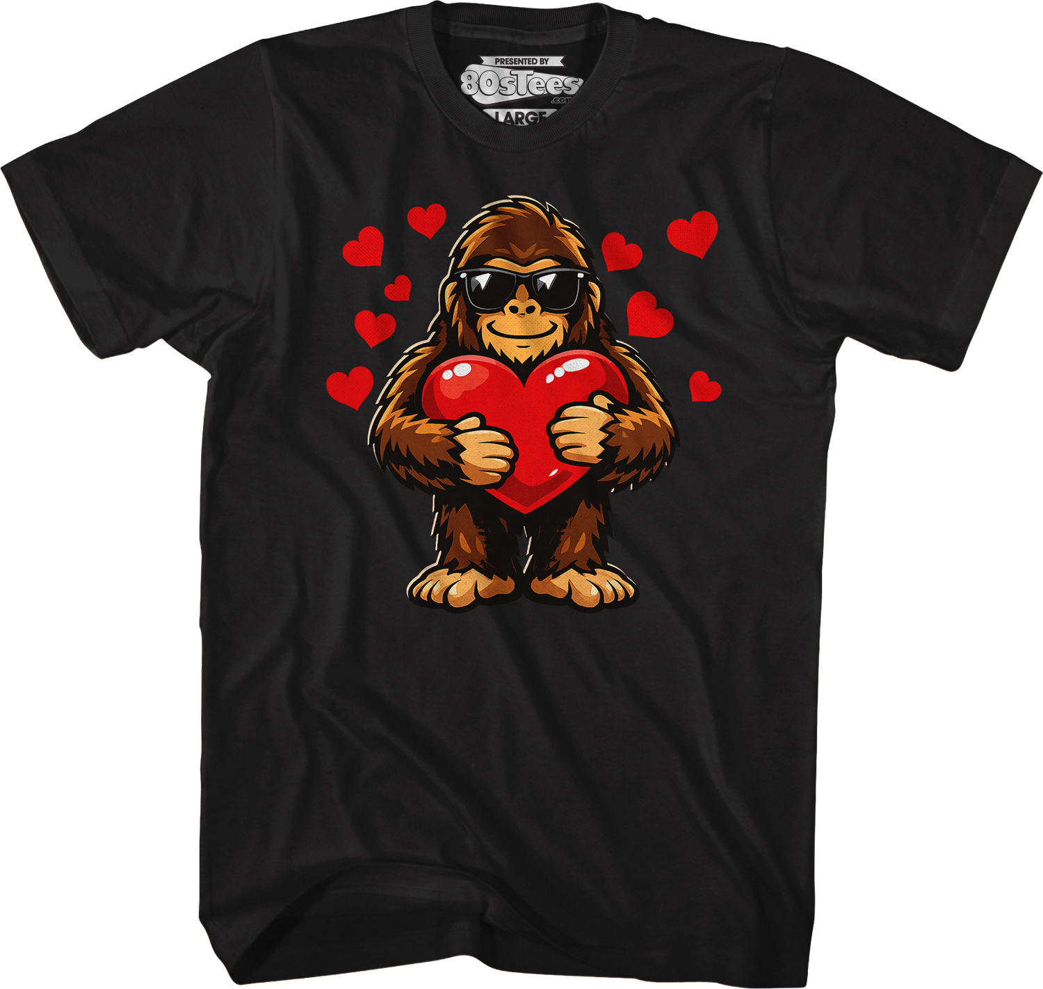 Let everyone know that you are a fan of the creature that blends love with mystery and folklore when you wear this 80sTees.com exclusive Bigfoot Valentine's Day Heart T-Shirt!