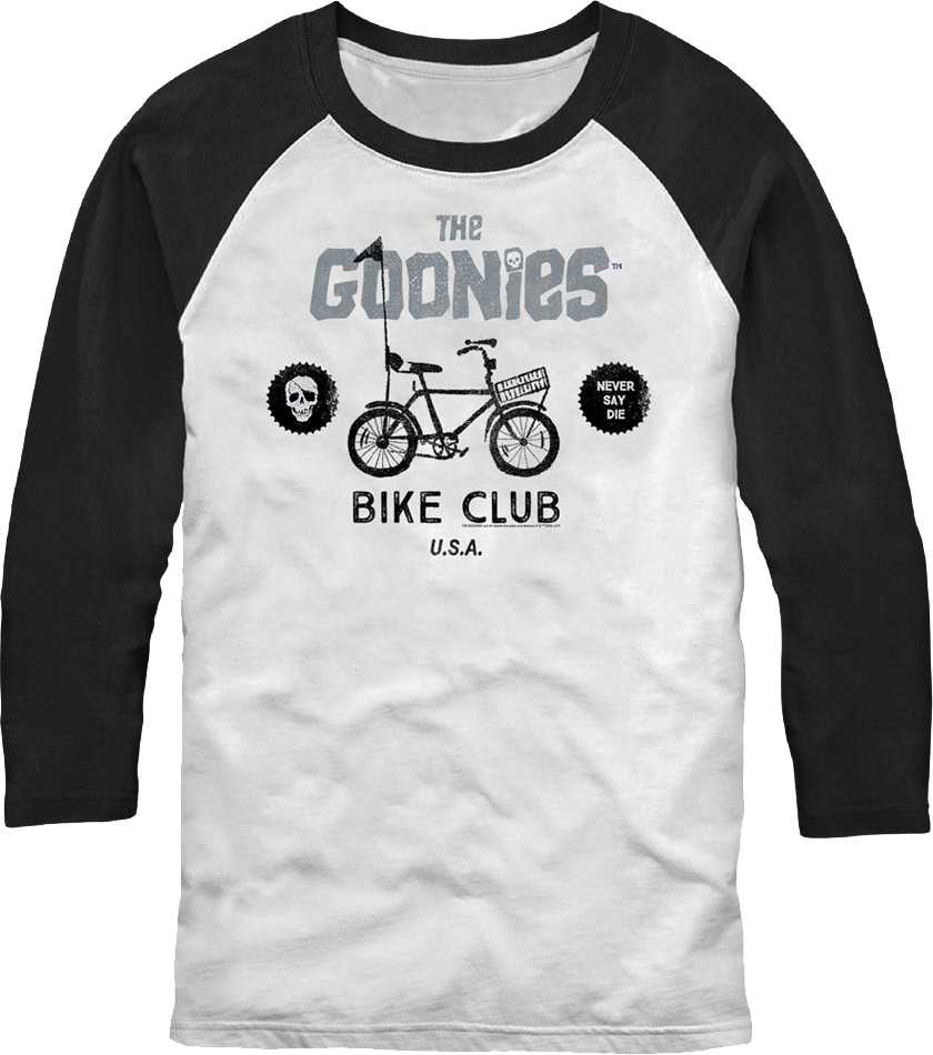 You'll look like you are an official member of the unforgettable squad from Astoria when you wear this Bike Club Goonies Raglan Baseball Shirt!