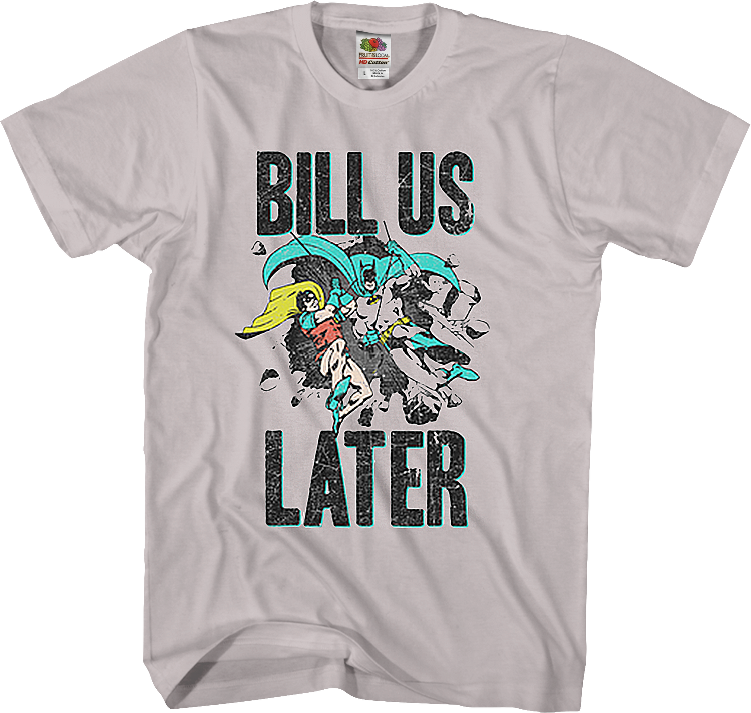 For any fan of the dynamic duo, this Bill Us Later Batman t-shirt is a must have!