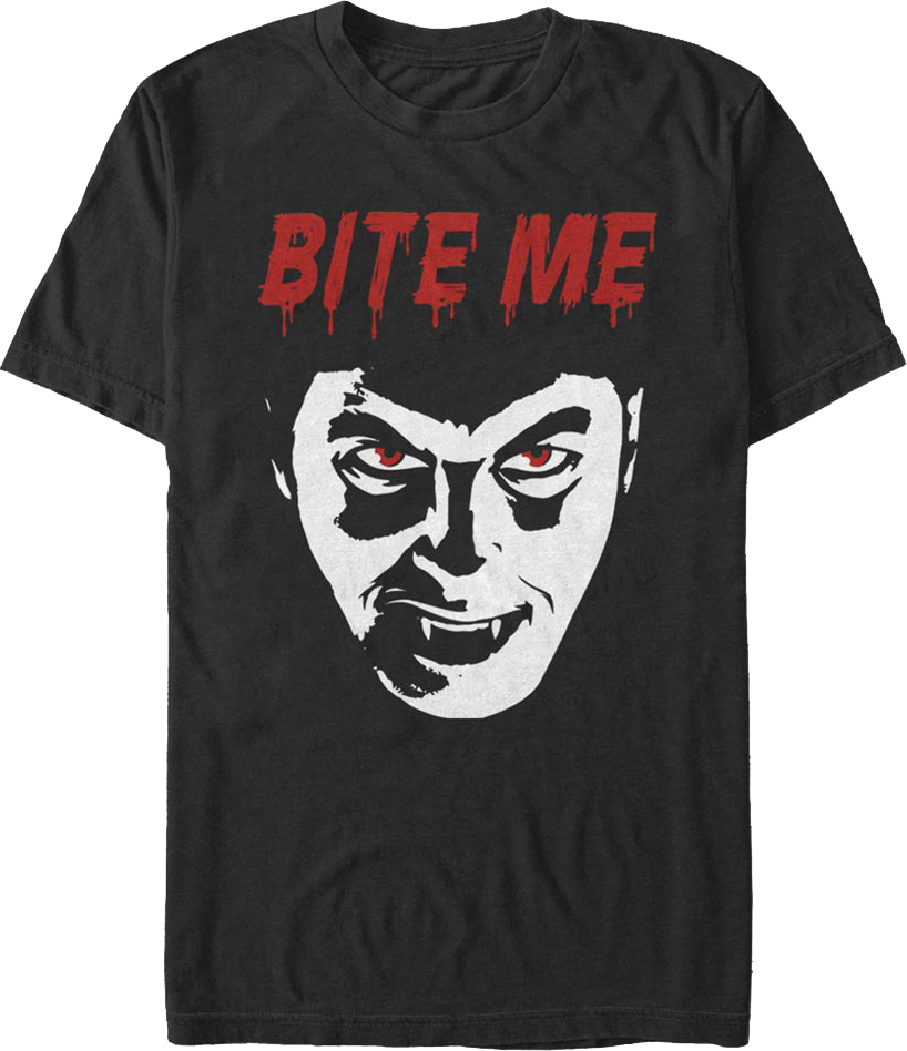 Count Dracula is the most popular vampire of all time and one of the greatest characters in popular culture. Everyone will know you are a fan when you wear this Bite Me Dracula T-Shirt!