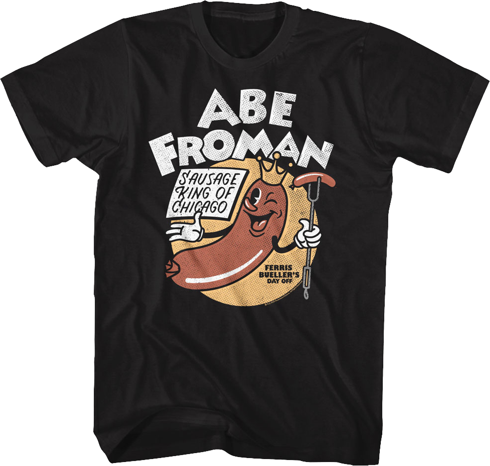 For any fan of the John Hughes classic starring Matthew Broderick, this Black Abe Froman Sausage King Ferris Bueller's Day Off T-Shirt is a must have!