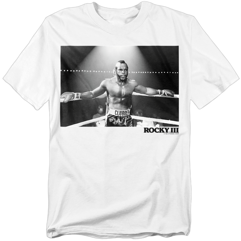 For any fan of Rocky III, this Black and White Clubber Lang Rocky III T-Shirt is a must have!