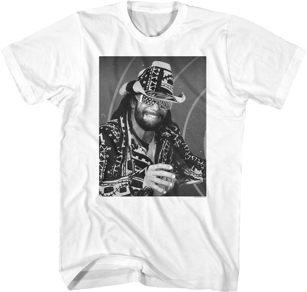 For any fan of the wrestling icon, this Black And White Photo Macho Man Randy Savage T-Shirt is a must have!