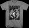 This Rambo t-shirt features a black and white image of John Rambo from the movie poster for the 1982 hit First Blood.