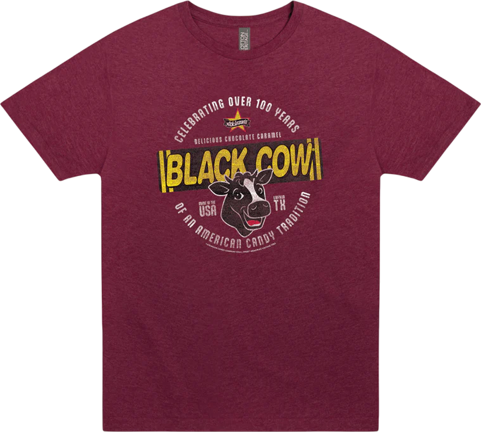 Black Cow was originally released in the 1920s as a chewy chocolate-covered caramel with a creamy marshmallow center. The flavor balance between sweet caramel, fluffy marshmallow, and milk chocolate makes it a satisfying treat. Everyone will know you are a fan of the delicious chocolate-caramel-marshmallow candy when you wear this Black Cow Atkinson Candy Company T-Shirt!