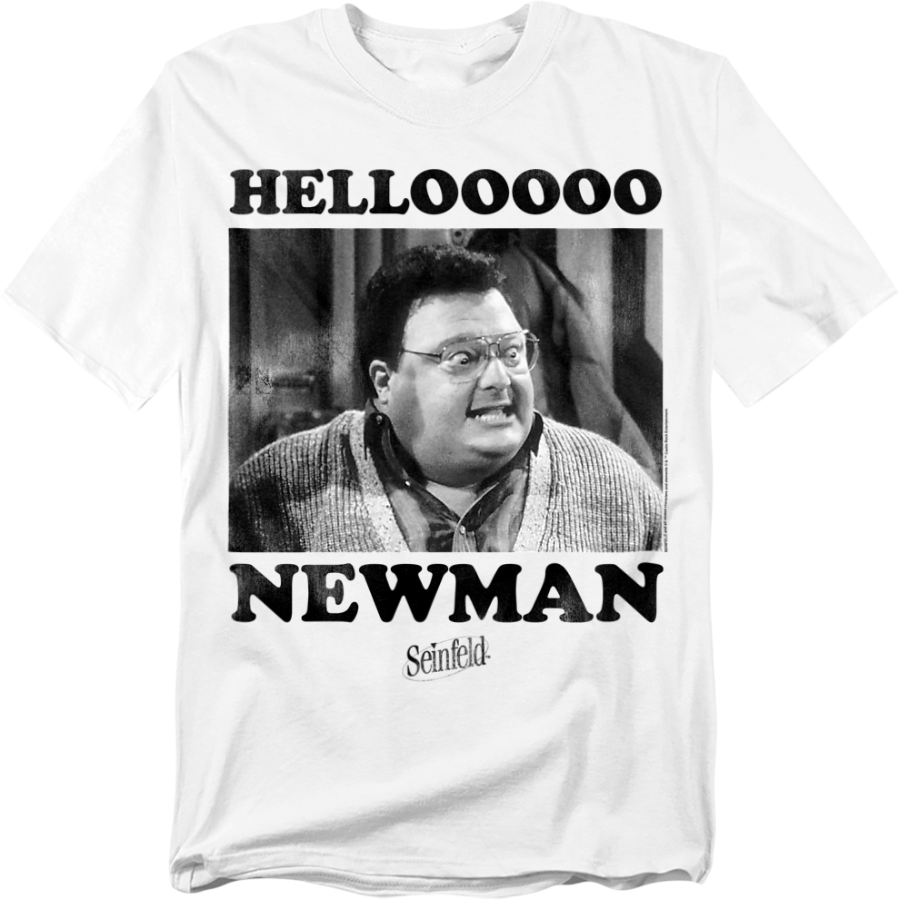 Everyone will know you are a fan of the iconic character portrayed by Wayne Knight when you wear this Black & White Hello Newman Seinfeld T-Shirt!